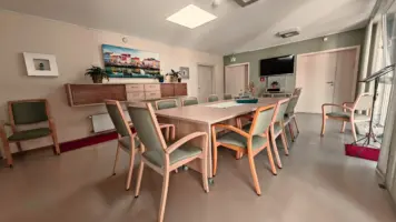 Auch Zugehörige sind bei uns herzlich willkommen und können auf Wunsch im selben Zimmer übernachten. Das Herzstück des Hauses bilden unsere Küche, eine gemütliche Essecke und ein heller Aufenthaltsraum – Orte der Begegnung und des Miteinanders.