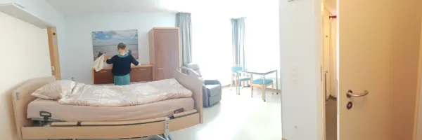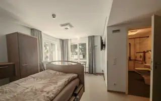 Unser stationäres Hospiz „Mit Herz und Hand“ ist ein Ort, an dem Menschen ihre letzte Lebenszeit in Würde und Geborgenheit verbringen können. In acht Einzelzimmern mit eigenem barrierefreiem Bad heißen wir unsere Gäste willkommen. Die Zimmer sind nicht nur funktional, sondern vor allem wohnlich – mit Raum für persönliche Erinnerungsstücke.
