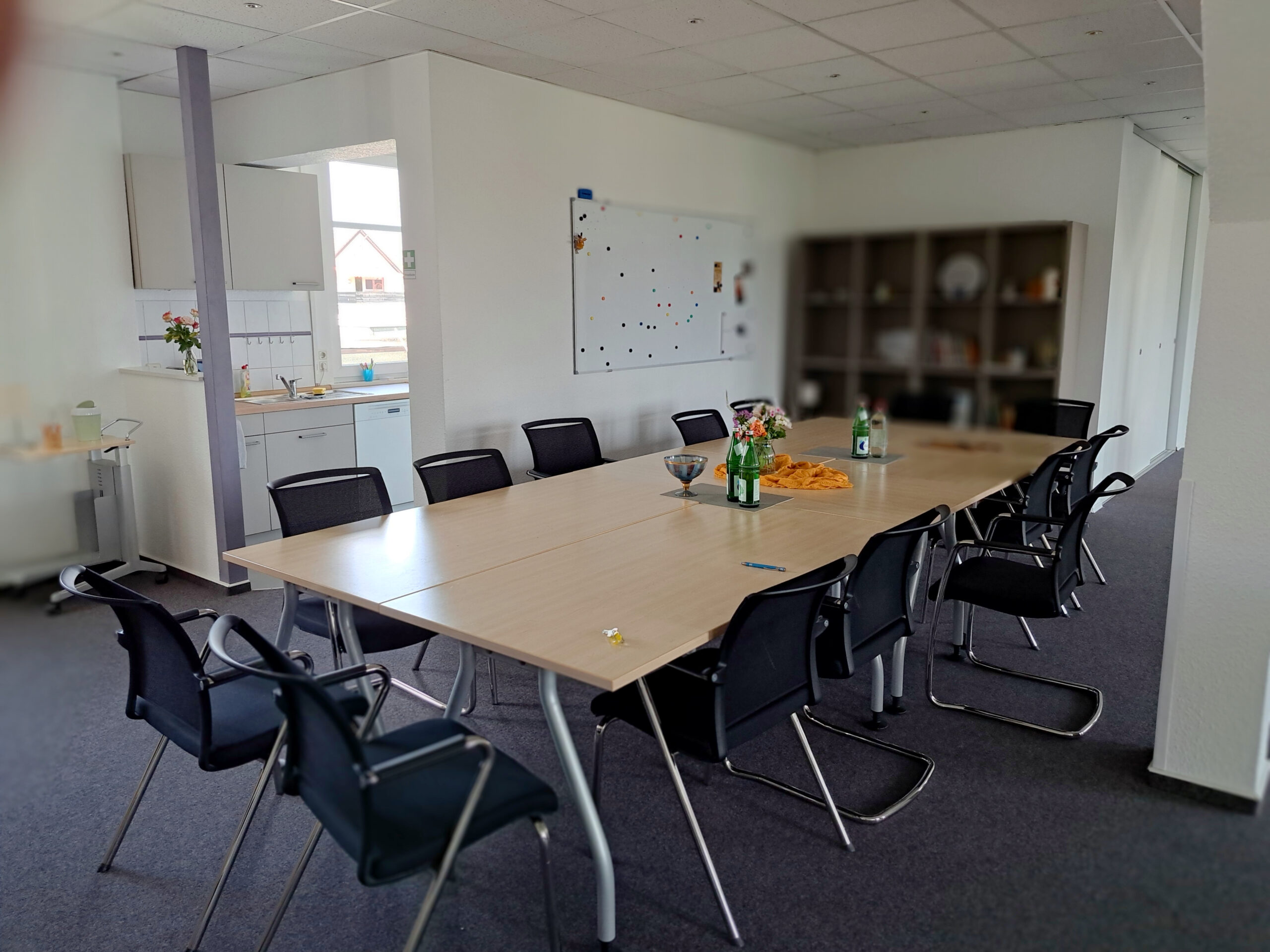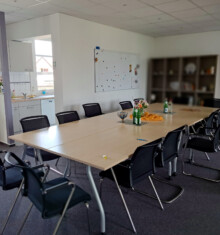 Neben komplettem Präsentationsequipment gibt es Gruppenräume für intensives Arbeiten, Sitzecken für persönliche Gespräche und einen großen Tisch, an dem wir mittags gemeinsam essen (Bei unseren Tagesseminaren ist köstliche Verpflegung im Preis inklusive – weil es guttut, sich bei schweren Themen zu stärken.) Wir verwöhnen Sie, denn Lernen gelingt am besten in entspannter Atmosphäre.