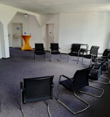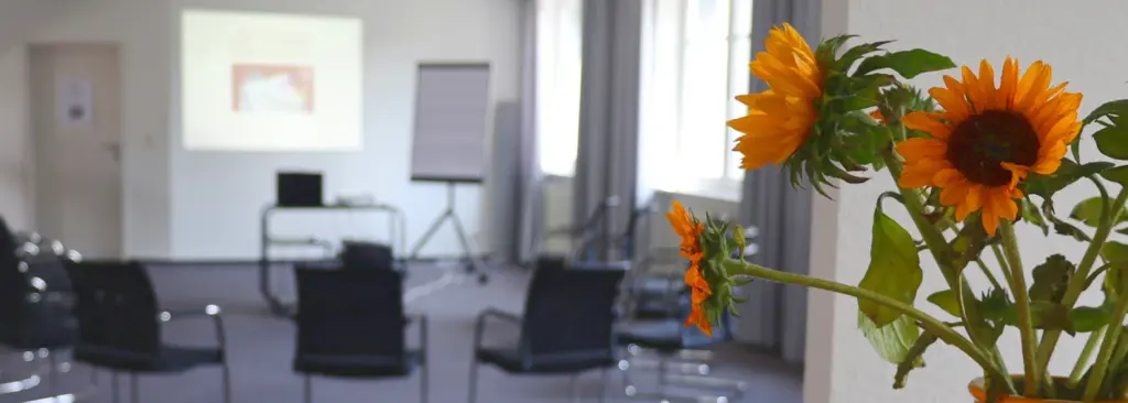 Unser Seminarraum befindet sich im ersten Obergeschoss. Sollte die Treppe für Sie ein Hindernis darstellen, sprechen Sie uns bitte vorab an – wir finden eine Lösung.